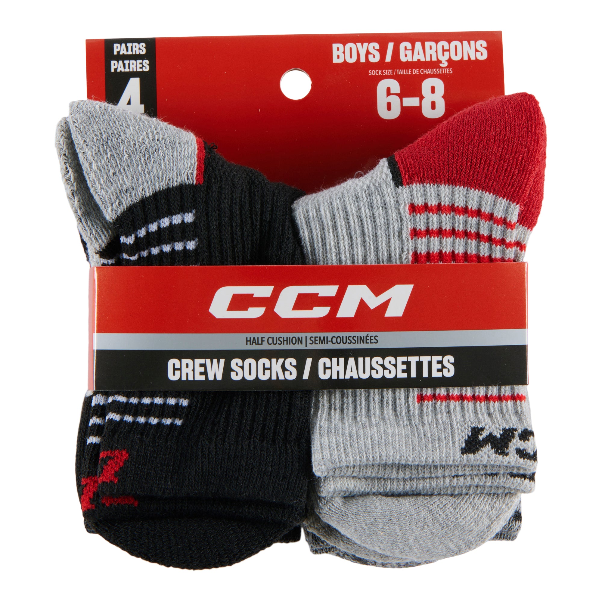 CCM Boy's Crew Socks, 4Pack Giant Tiger